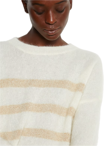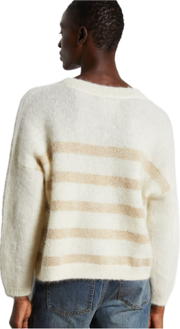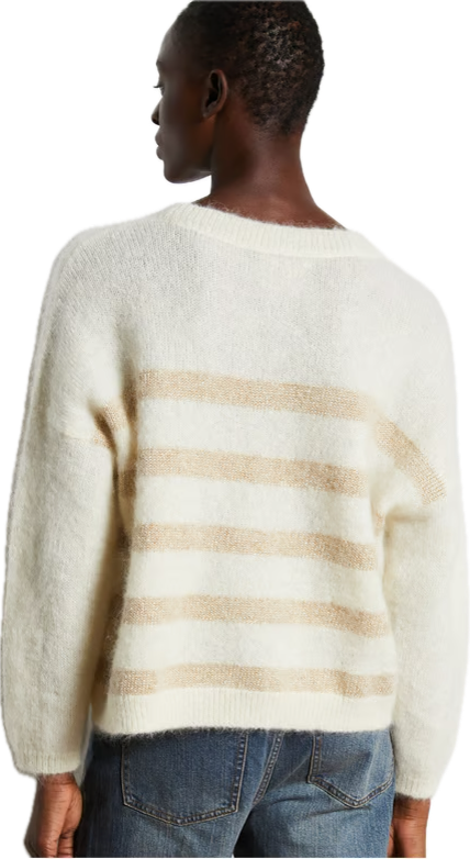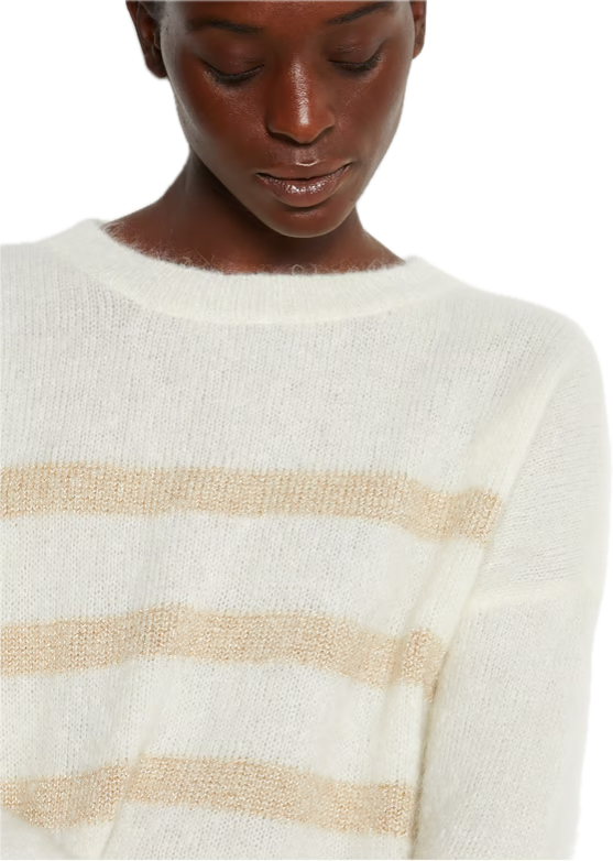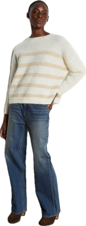 Pull ample rayé en laine mélangée Col rond Coupe ample Manches longues Fermeture : à enfiler Emmanchures basses Imprimé à rayures Fils lurex Finitions bords-côtes 82% Laine 16% Polyamide 2% Elasthanne