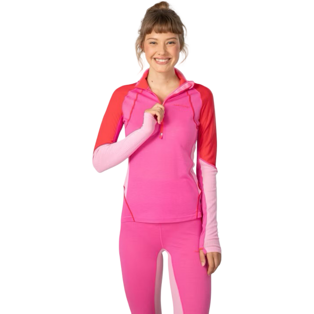 Découvrez le Kari Traa Alma Half Zip : une couche de base technique isolante qui évacue l'humidité pour toutes vos aventures sportives. La technologie de cartographie corporelle et les panneaux stratégiques Tencel des côtes, du cou et des aisselles évacuent l'humidité. Un mélange polyester/laine sur la poitrine et les bras isole sans surchauffe. Parfait pour le ski de randonnée ou tout autre cardio d'hiver , l'Alma a une longue demi-fermeture éclair afin que vous puissiez personnaliser la ventilation. Le menton haut protège votre visage des éléments orageux, et les boucles du pouce ajoutent une autre couche de protection.