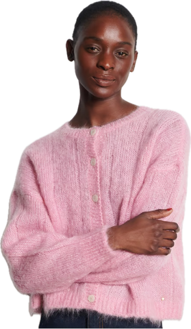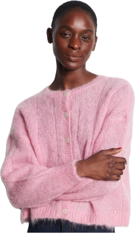 Retrouvez tout le savoir-faire maison à travers le gilet Chouette. Tricoté dans une maille duveteuse laissant apparaître de fines rayures et coupe large pour une allure dynamisée, vous aimerez le porter à même la peau ou superposé sur une robe ou un t-shirt.