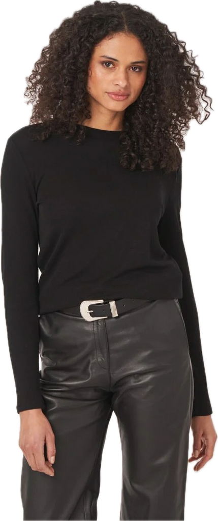Top Femme Côtelé — Laine Mélangée & Coupe Slim Jersey côtelé Mélange de laine Col rond Manches longues T-shirt légèrement cintré Soulignant la silhouette Lavage à la main, nettoyage à sec autorisé 55% Laine / 45% Viscose