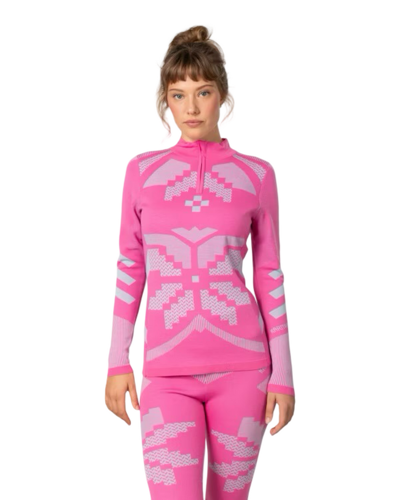 Découvrez le Kari Traa Faith Half Zip, un haut performance 100% laine mérinos disposant de notre tout première technologie différenciée pour femmes. Ce haut semi sans coutures intègre une structure de maintien et d’aération là où vous en avez besoin: Sous les bras, sous la poitrine et au dos. Avec son motif de roses éclatantes, le haut Faith est conçu pour les femmes exigeantes qui veulent être élégantes lors de leurs exploits.