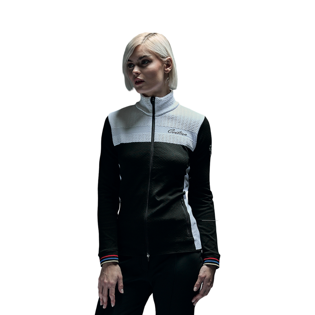 Couche intermédiaire à fermeture éclair à régulation thermique en DHtech 400. Le jacquard exclusif WINTER GAMES en fait un item unique pour les caractéristiques techniques et la conception.