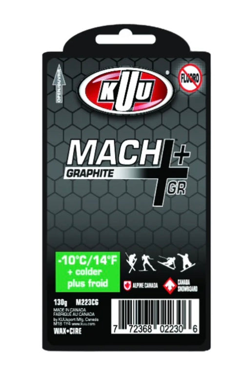 Fart de course Kuu MACH+ Graphite Vert Froid (-10 °C/-30 °C) | 130 gLe fart de course sans fluor de Kuu, fabriqué au Canada, est idéal pour les conditions froides à très froides, fraîches ou sèches.