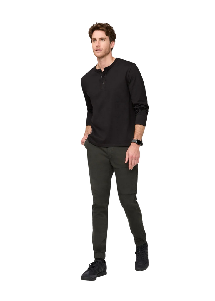 Ajusté au niveau des hanches et des cuisses, avec une jambe profilée et un revers de pantalon de jogging. Fabriqué dans notre meilleur tissu extensible. Les fibres naturelles offrent une gestion de l'humidité et des propriétés antibactériennes pour rester frais et sec.