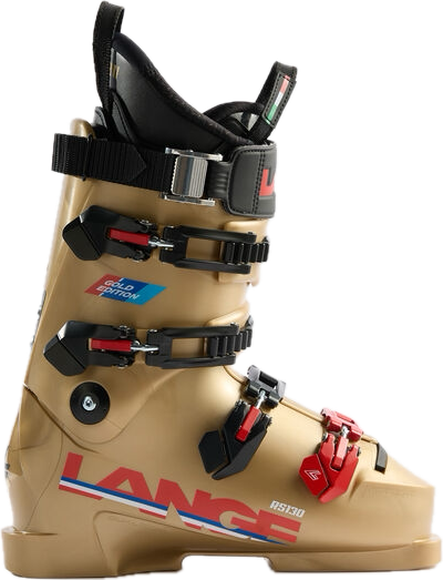 Pour accompagner le ski, Lange propose une version exclusive de son modèle emblématique : la RS 130 LV Gold Edition. Chaussure de compétition par excellence, elle hérite des technologies éprouvées en soufflerie et en compétition, tout en offrant une finition dorée assortie au ski.