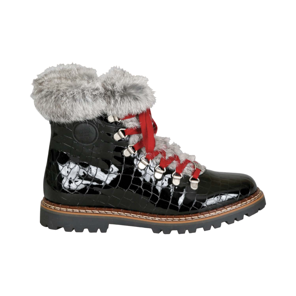 SPLUGEN de AMMANN est l'un des modèles les plus vendus d'Ammann et il est facile de comprendre pourquoi. C'est la hauteur idéale à porter avec votre combinaison de ski, un jean ou un legging et s'enfile facilement grâce à une fermeture éclair intérieure. Cette version peau de vache comporte une zone avant ressemblant à une langue rehaussée des lacets rouges emblématiques d'Ammann. La doublure intérieure est entièrement en fourrure avec une semelle en caoutchouc de type vibram robuste mais flexible fabriquée avec une construction passepoilée. Le modèle est en taille complète uniquement et a tendance à s'adapter aux petites tailles.
