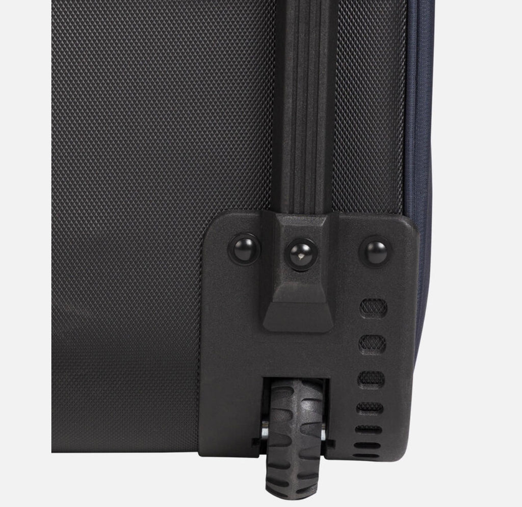 Les roues robustes intégrées et la poignée rétractable assurent des déplacements en douceur