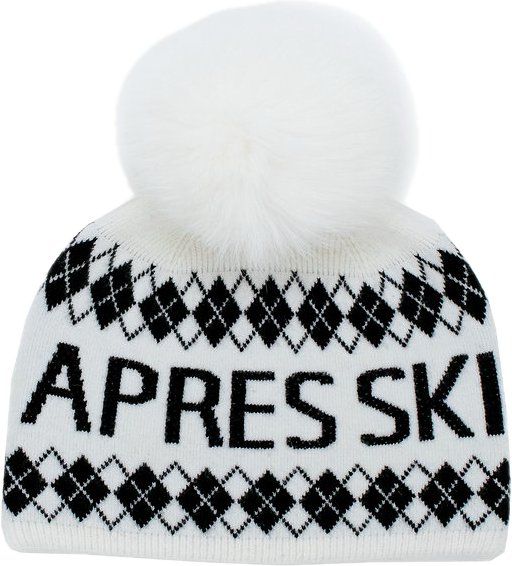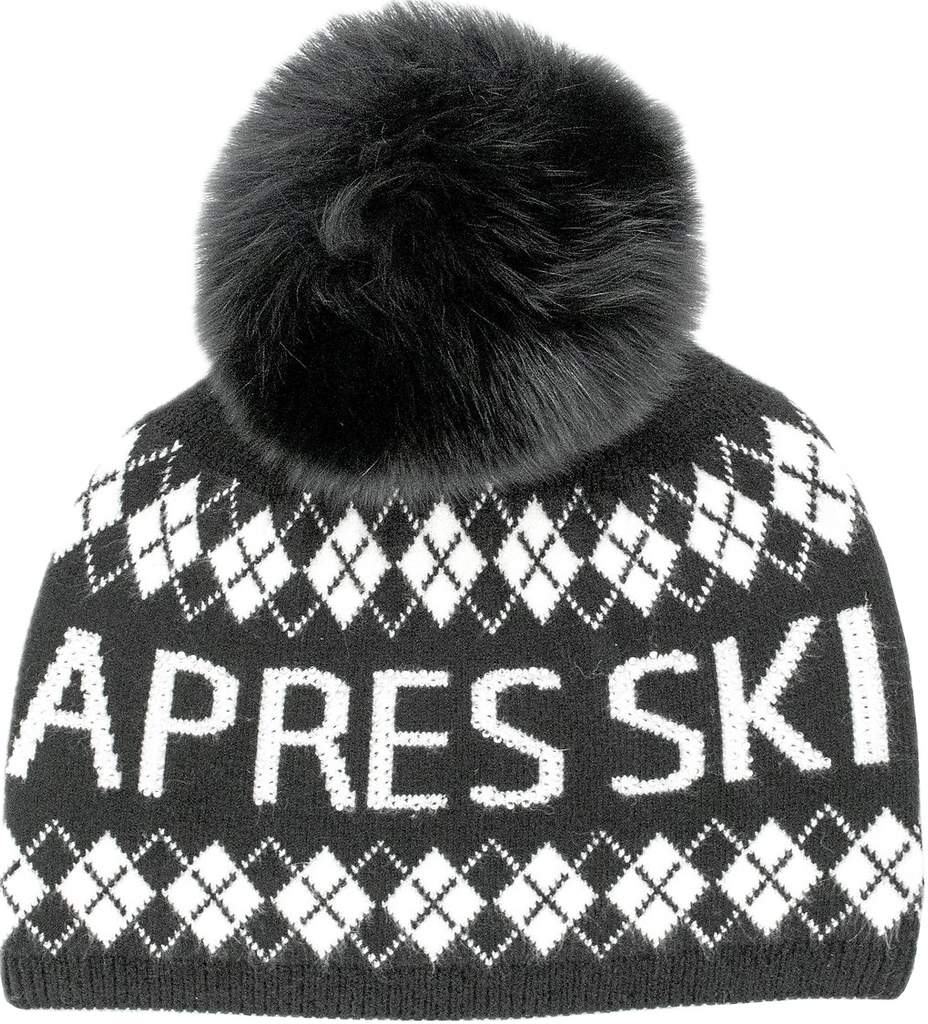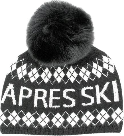 TUQUE LOSANGES "APRES SKI" AVEC POMPOM EN FOURRURE DE RENARD
