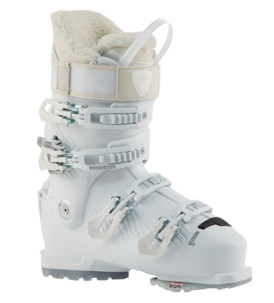 Entrez dans une révolution : chaussage facile et hautes performances grâce à notre conception innovante Step In. Conçues pour les skieuses recherchant un chaussant généreux et un flex modéré, les chaussures de ski Rossignol Vizion 4B 80 pour femme sont dotées d'une coque à chevauchement révolutionnaire qui s'ouvre largement à l'arrière pour un chaussage sans précédent grâce à un mécanisme innovant de spoiler et de colonne vertébrale. Ce système crée une large articulation au niveau du collier et un maintien parfait pour un transfert de puissance précis et des performances optimales en descente, avec une facilité d'utilisation inégalée. Enfilez, bouclez et skiez.