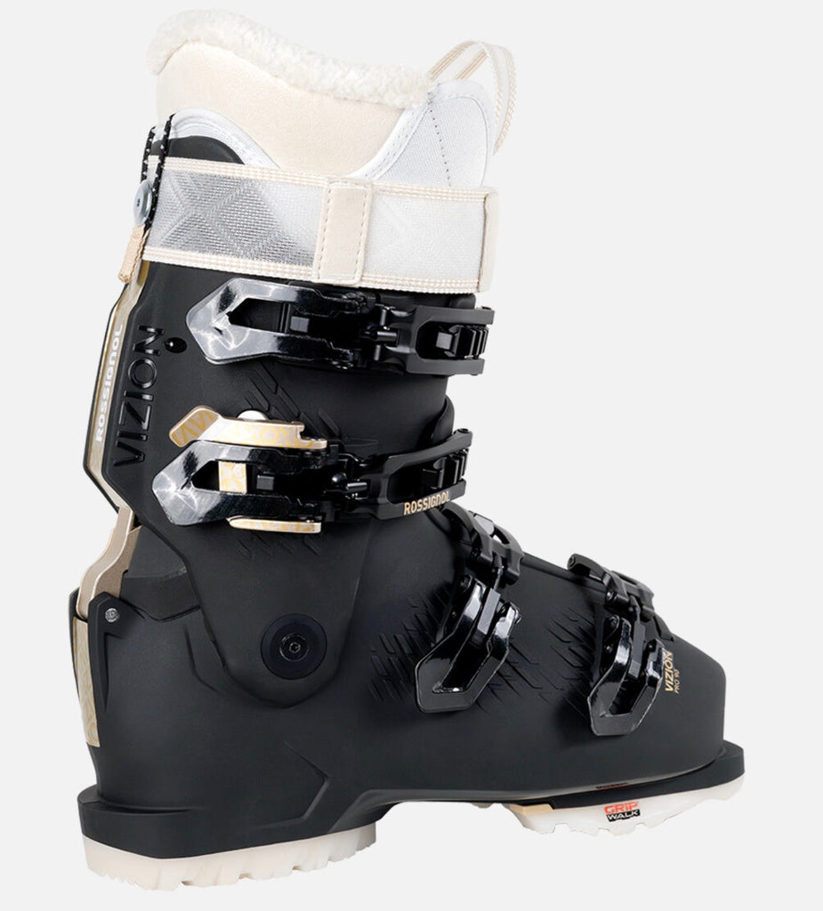 Conçues pour les skieuses à la recherche de performance, mais sans les contraintes du chaussage, les chaussures de ski Rossignol Vizion 4B Pro 90 pour femmes bénéficient de la technologie Step IN qui permet une large ouverture de la chaussure, qui permet une entrée très facile. La double boucle permet l'ouverture très simple de la chaussure et une position repos. L'isolation thermique du chausson en laine de Mérinos, combiné à une doublure peau de mouton très douce apporte un confort et une chaleur incomparable.