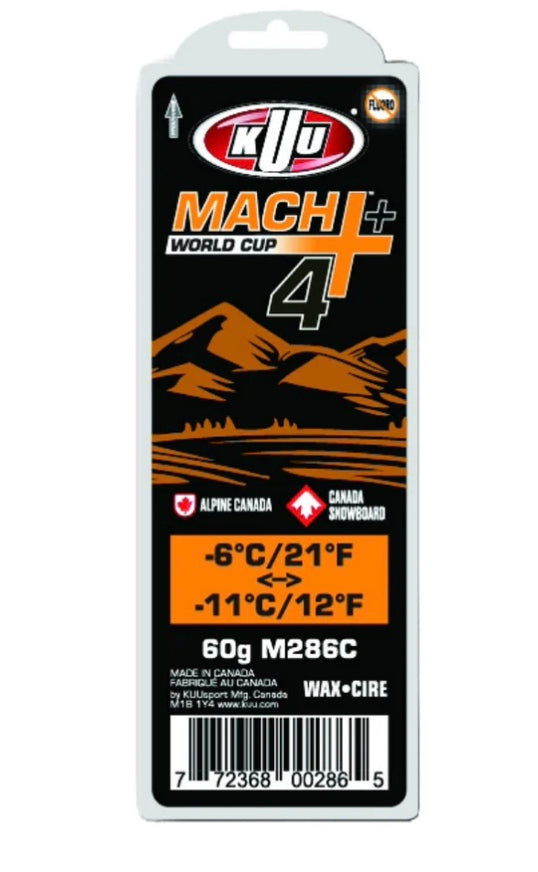 Le fart de course haut de gamme sans fluor de Kuu, fabriqué au Canada ! Le MACH4+ Orange est idéal pour les conditions douces.
